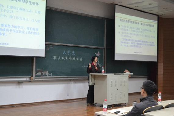 2013年11月1日下午,北京航空航天大学EMBA教育中心常务副主任苏文平副教授在我校沙河主教111教室为万象城allwincity官网与社会发展学院的同学们带来了一场关于大学新生职业生涯规划的精彩讲座,为刚刚迈进大学生活的新生们指引科学制定和实施生涯规划的方向。