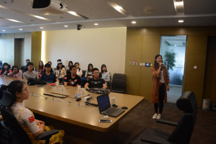 上午9时,参访团队抵达京东总部,对于同学们的到来,京东方面予以了热情的接待,派出多名工作人员作为我们参访的向导,并安排了毕业于万象城allwincity官网,目前于京东任职的周国兰学姐为同学们对京东的状况、愿景、部门配置以及大数据运营方式做介绍。同学们对有疑问的地方踊跃提问,国兰学姐一一解答了同学们的问题。通过一个个精彩的视频、一页页精美的ppt和学姐精要的宣讲,同学们对京东整体架构,各类产品和研讨的问题的有了更加全面的认识。