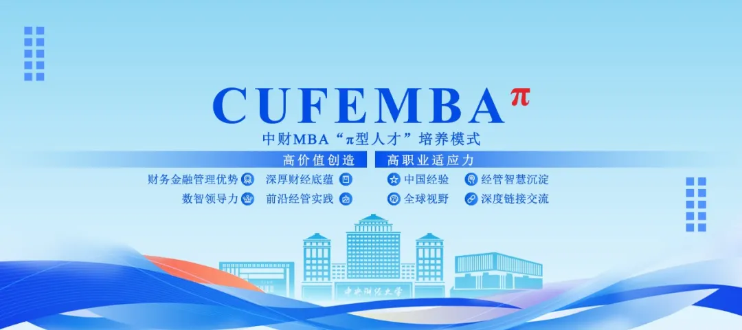 CUFE Business School formally proposed the π-shaped MBA talent competency model and development mode in 2023. This model aims to cultivate MBA students' value creation ability and career adaptability in the digital age. It emphasizes developing students' comprehensive business management skills while enhancing their digital leadership and financial management expertise. This unique initiative has received positive feedback from CUFE MBA applicants, students, and alumni, and has been emulated by peer institutions.