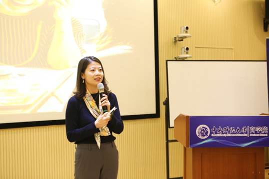 On the evening of March 19, 2019, the 18th Session of CUFE-UnitedTogether “Drive Career Development of Business School • Lecture” was heldsuccessfully in the lecture theater of the MBA Education Center, CentralUniversity of Finance and Economics (CUFE). Ms. Wang Huan, head of customersuccess and solutions at LinkedIn China, was invited to give a lecture themedon “Data-driven Enterprises and Talent Reform.” Luan Tian, a teacher from theCUFE MBA Education Center, attended and hosted the event.