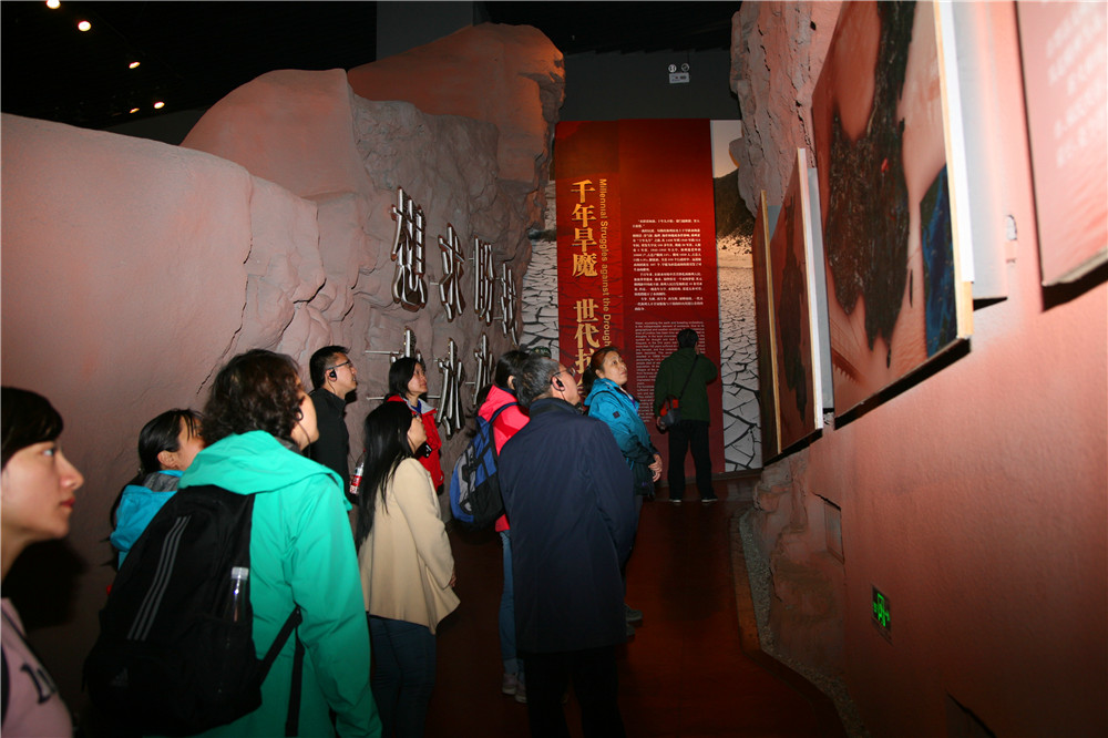 老师们先来到红旗渠展厅,聆听关于红旗渠修筑的历史背景、修筑原因和林州人民艰苦卓绝的修筑历程以及历史意义。红旗渠是二十世纪六十年代,林州(原林县)人民在极其艰难的条件下,凭着“重新安排林县河山”的英雄气概和大无畏的牺牲精神,在太行山的悬崖峭壁上逢山凿洞、遇沟架桥、苦战十个春秋建成的“生命之渠”,渠线纵横1500多公里,被誉为“人工天河”,是“全国爱国主义教育基地”。红旗渠是河南林州人民在党的领导下,林州人民坚持自力更生为主,国家扶持为辅原则,依靠林县人民自己的人力、物力和财力,特别是在三年困难时期粮食紧张、物资短缺、设备技术条件落后的情况下倍历艰辛完成的伟大工程。
