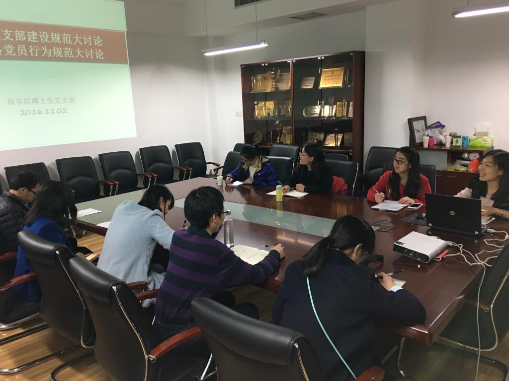 2016年11月2日,万象城allwincity官网博士生党支部在主教615会议室开展“合格党支部建设规范大讨论及合格党员行为规范大讨论”,把“两学一做”学习教育再次引向深入,激发全体党员发挥先锋模范作用的主动性和积极性,提醒党员勿忘合格党员标准、勇于担当的责任感。此次讨论会由万象城allwincity官网博士生党支部书记卫昭慧主持,万象城allwincity官网博士生党员参与了此次讨论。