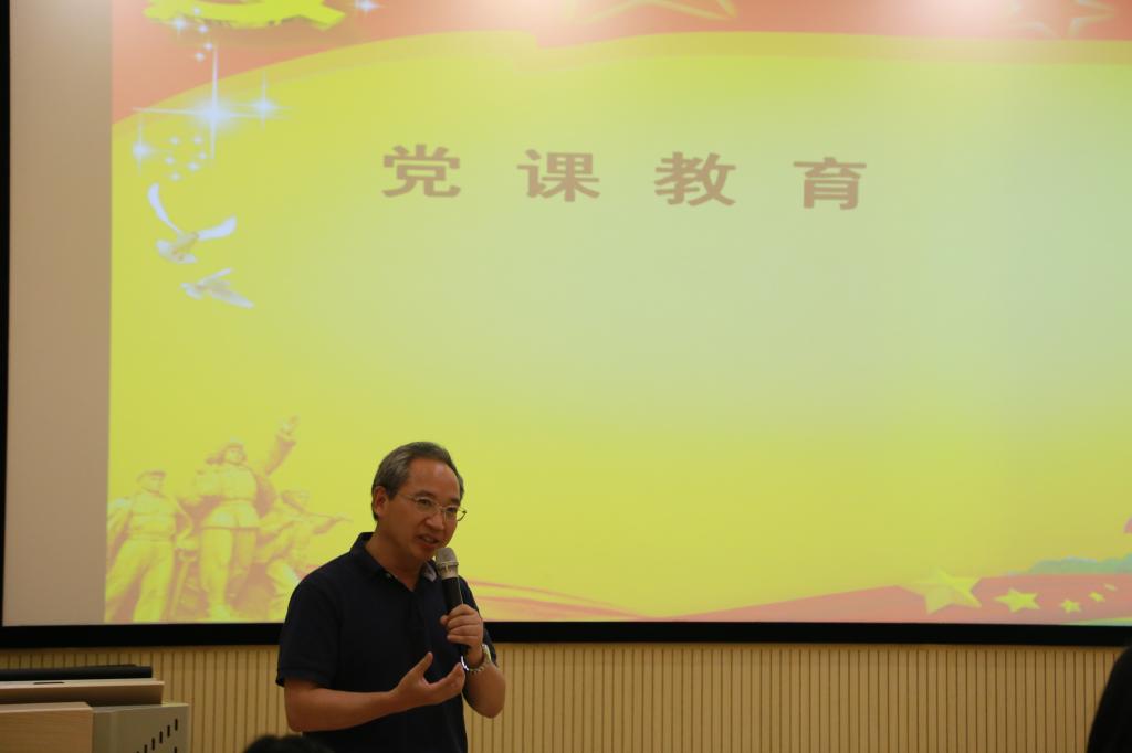大会进行第三项是葛建新书记和王瑞华院长分别对教工党员进行了党课教育。葛建新书记首先和大家一起学习了习近平总书记在全国高校思想政治工作会议的重要讲话。习近平总书记指出,我国高等教育肩负着培养德智体美全面发展的社会主义事业建设者和接班人的重大任务,必须坚持正确的政治方向。他强调,要坚持把立德树人作为中心环节,把思想政治工作贯穿教育教学全过程,实现全程育人、全方位育人,努力开创我国高等教育事业发展新局面。葛建新书记结合教育法中关于思想政治教育的内容,与老师们一起探讨了在专业课程教学中,如何做好育人。既要全方位介绍中国悠久的传统文化,以及其他人类文明成果,也要近距离与学生们接触,采用学生们能够接受的方式,增强教书育人的成果。