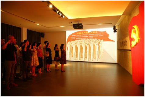 走出展室,在学习的最后一个环节,参加此次学习活动的党员在党旗下重温入党誓词。