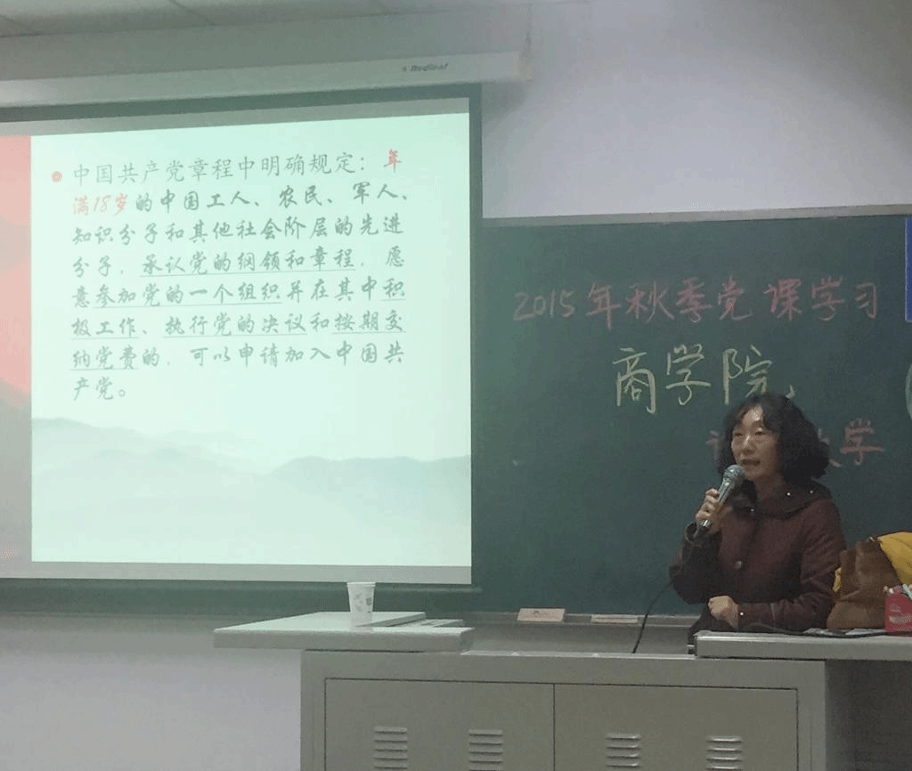 大会伊始,韩老师讲了党的基本要求,不但提升了入党积极分子们对党的认识,也让入党积极分子认识到党员应该具备极高的道德素养与政治觉悟。之后,韩老师向入党积极分子介绍了中国共产党的性质、中国共产党党员的前提条件、党员基本标准等内容,鼓励同学们争取早日成为优秀共产党员的一份子。随后,老师向积极分子们推荐了《共产党宣言》《为人民服务》《纪念白求恩》三篇文章。让同学们明白中国特色的社会主义事业是群众的事业,为祖国的共产主义事业不懈奋斗,是当代合格党员的信仰。此外,韩兰老师还就入党的具体流程进行了介绍,对同学们提出了五个标准:应向党组织积极表达自己的愿望、应经常主动地向党组织汇报自己的思想状况、应当积极参加党的活动,应当自觉接受党组织的培训、应正确对待党组织的考察,对同学们的思想行为产生了积极的引导作用。最后,韩老师以毛主席的寄语表明了青年对于国家的积极意义,激励大家要具有发展自身,贡献社会,造福人民的精神,在实现中国梦的历史进程中放射出青年特有的激情与源源不断的动力。