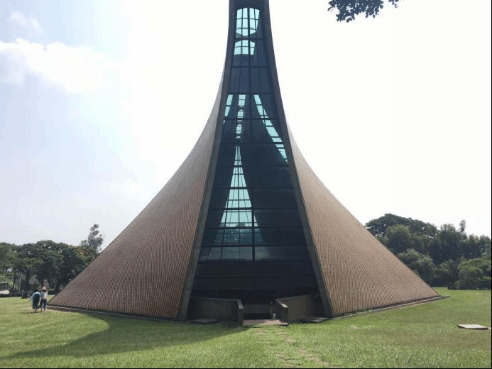首先来到的地方必然是那个亚洲乃至世界闻名的建筑——路思义教堂。是著名的建筑师贝聿铭先生和陈其宽先生之作。第一眼看到路思义教堂的时候感觉它与东海大学的校园已经完美地融合在一起了,教堂四周的草坪上是学生在看书或者围成一圈聊天或是躺着听音乐,充满了生活的气息。