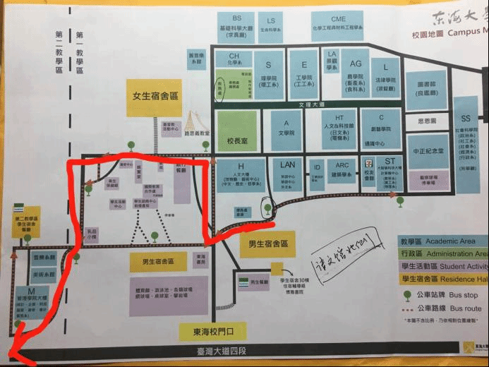 当把生活的一切安排妥当之后,就开始上课了。习惯了在中财5分钟内从主教走到食堂,又5分钟走到宿舍的日子,刚开始上课还不习惯要坐校内公车的生活。每次上课都要提前算好公车时间,到站牌等待,然后穿越大半个东海大学来到上课的管理学院大楼。